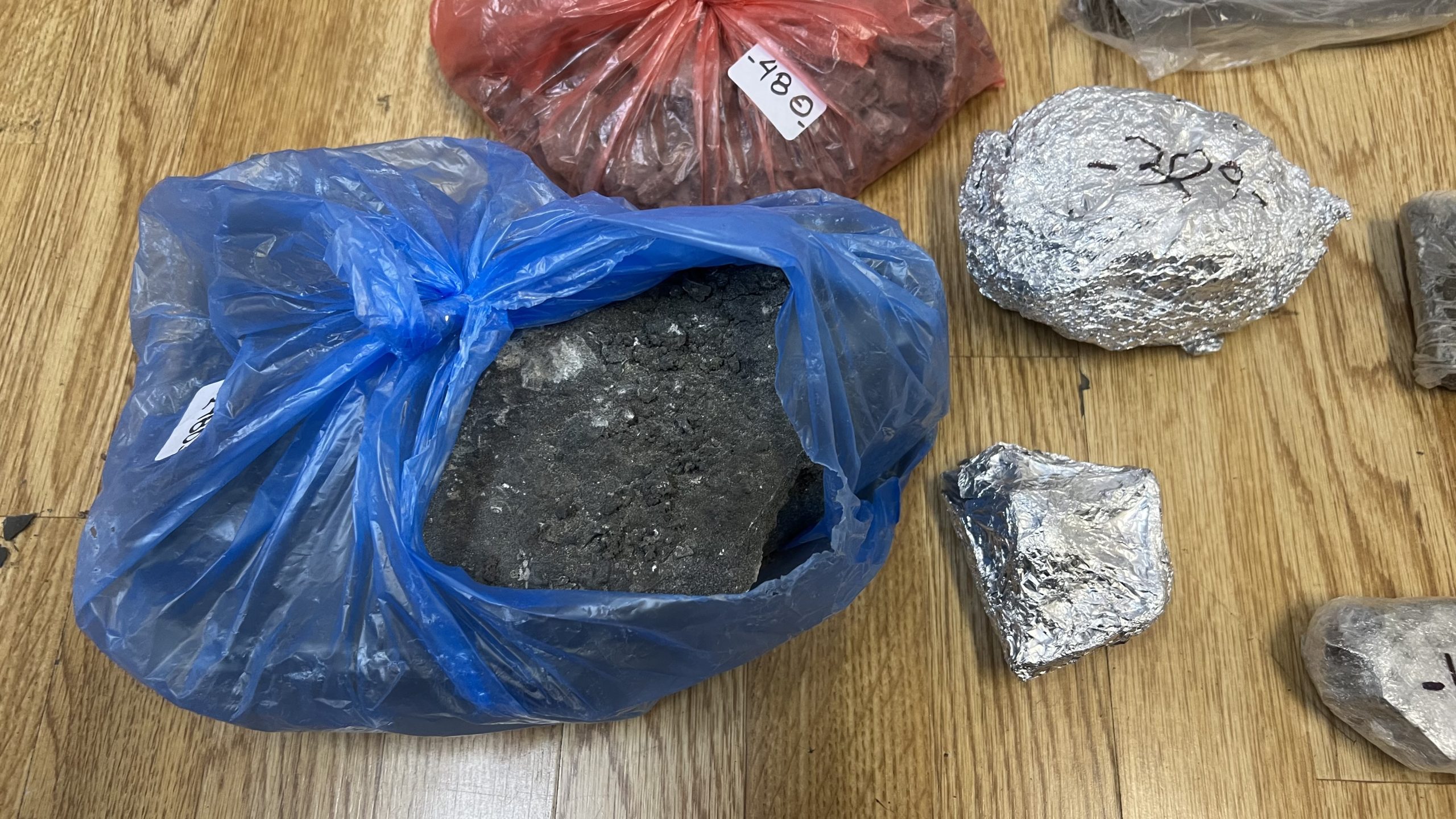 - βραχώδη τεμάχια, βάρους -9- κιλά και -400- γραμμ., άγνωστης χημικής σύστασης,